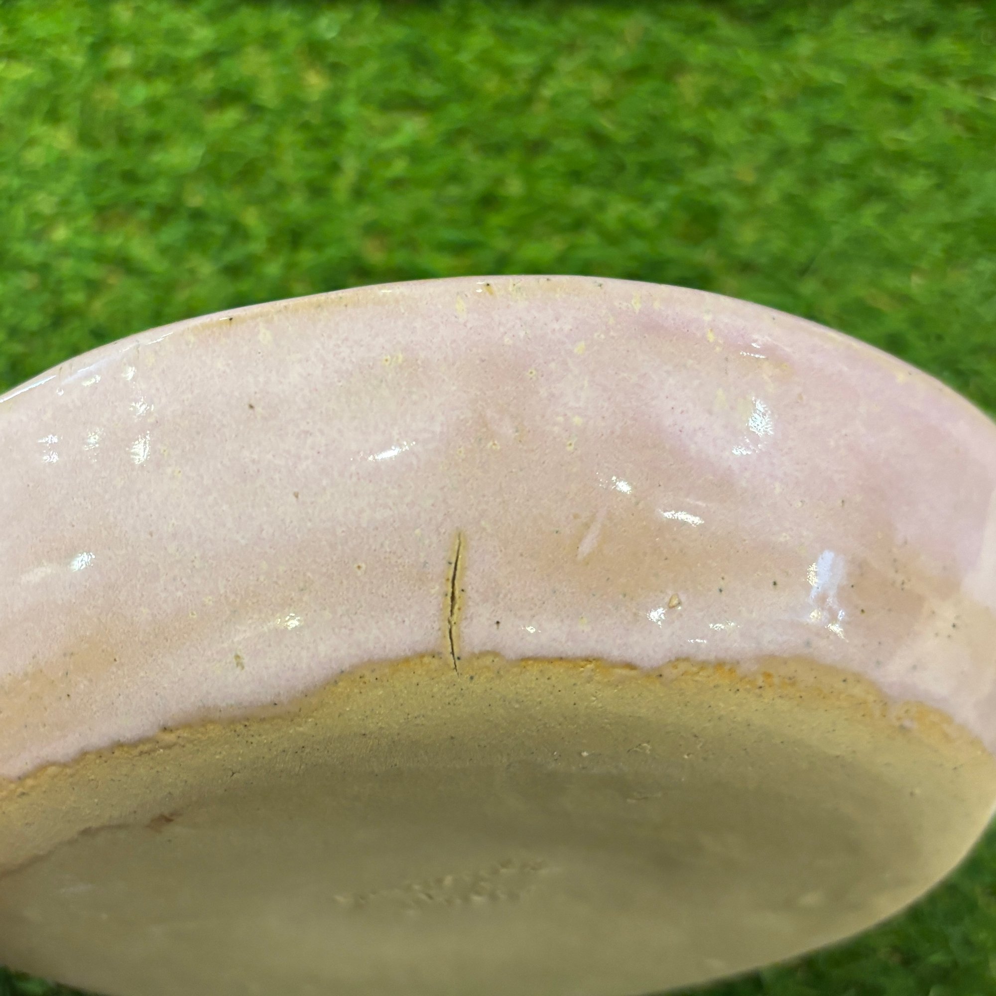 SMALL crack on exterior of plate, doesn't go through the piece or interfere with the food safe interior. just a minor visual flaw!! picture included.