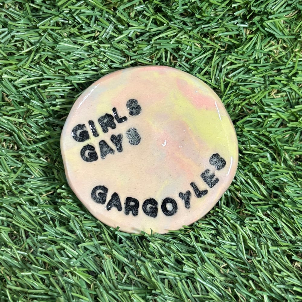 Rainbow marble clay with stamped design. These magnets were a test with imperfect/bubbly glaze hence the low price!